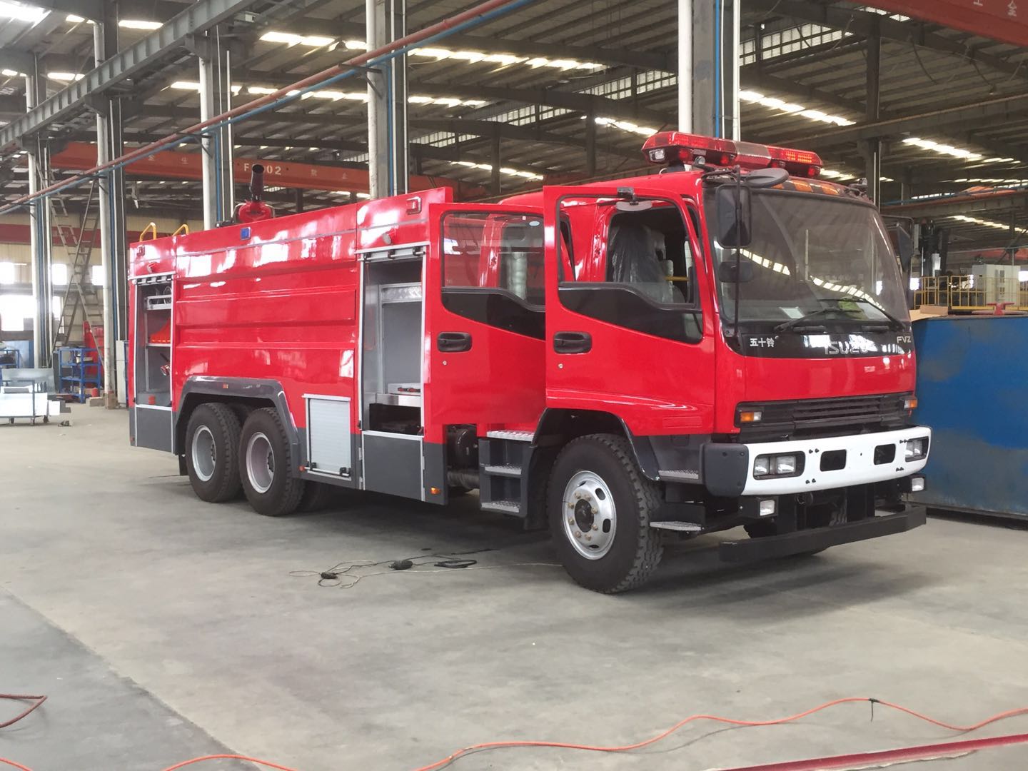 這款車型摒棄了之前水罐消防車只能救火的缺點、研發的新型救援吊機與救援照明設備全部加裝上去、方便夜晚的救援也是亮如白晝、最關鍵的是整車也配備自動充電裝置、24小時供電無憂、為沿海地區的恢復提供無間斷的保障、領導們看過后也是非常滿意。